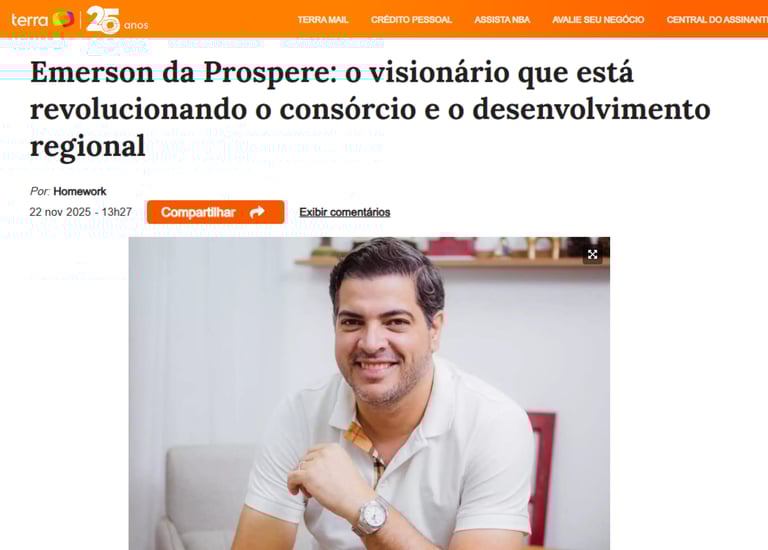 SoluçõesEmerson Gomes dos Santos, conhecido como Emerson da Prospere, tornou-se um dos principais nomes no avanço do mercado de consórcios no Brasil e no desenvolvimento regional de Hortolândia – SP, cidade onde vive desde 1997. Visionário e orientado a resultados, ele criou um método exclusivo de construção de patrimônio que vem transformando a forma como famílias, investidores e empresas utilizam o consórcio como ferramenta real de enriquecimento — com estratégia, método e consciência, não com promessas.